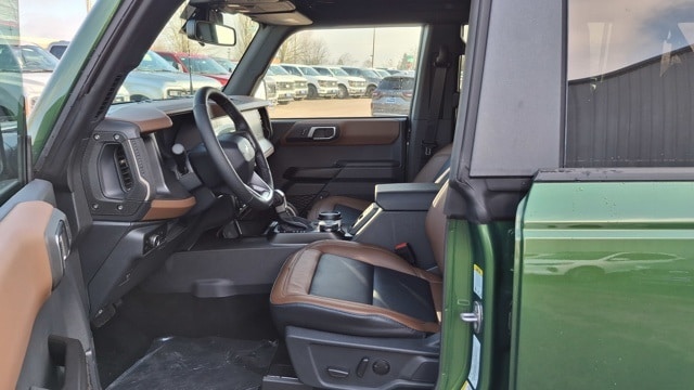 A 2.3L EcoBoost I-4 engine accompanied by a 10-Speed Automatic transmission is going to get you where you want to go and then some! Get there in style and comfort with an Eruption Green Metallic exterior and Black Onyx w/Leather-Trimmed/Vinyl Bucket Seats interior in this 2024 Ford Bronco Outer Banks.