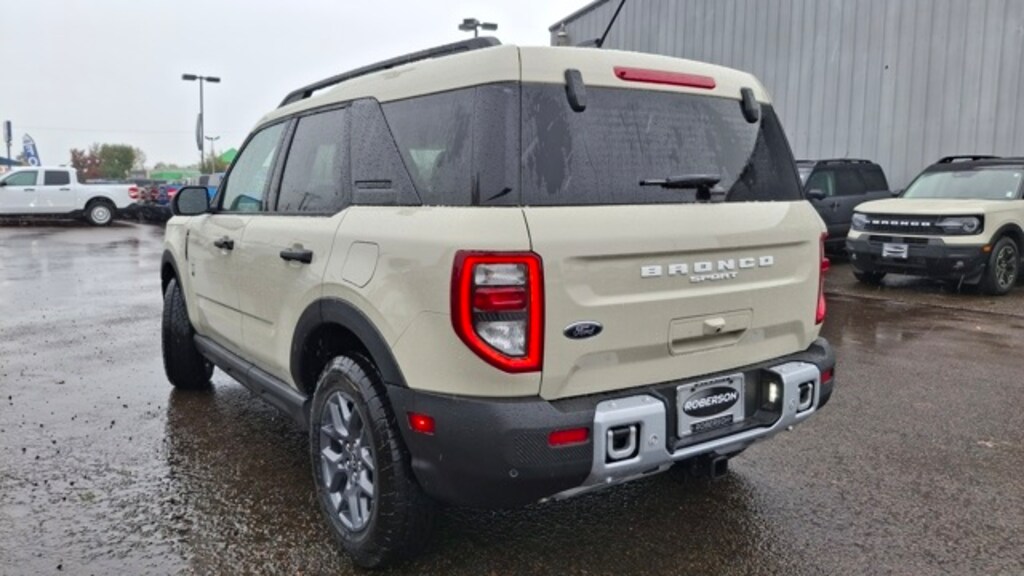 A 1.5L EcoBoost engine accompanied by an 8-Speed Automatic transmission is going to get you where you want to go and then some! Get there in style and comfort with a Desert Sand exterior and Medium Light Smoked Truffle w/Cloth w/Easy-to-Clean Front Bucket Seats interior in this 2025 Ford Bronco Sport Big Bend.