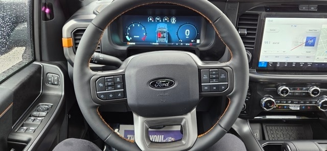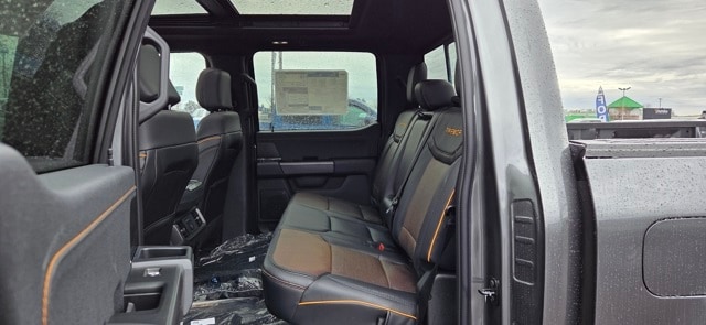 Bed Utility Package (4 Pickup Box Tie-Down Plates, LED Box Lighting, and Power Tailgate), Equipment Group 402A High (2nd Row Heated Seats, Ambient Lighting, Auto-Dimming Rear-View Mirror, Front Axle w/Torsen Differential, Heads-Up Display, Heated Steering Wheel, LED Taillamps, Media Bin Door, Modular Front Bumper & Carbon Black Rear Bumper, Power Glass Heated Sideview Mirrors, Power-Adjustable Pedals w/Memory, Premium Wrapped Steering Wheel, Radio: B&O Unleashed Sound System by Bang & Olufsen, Rain-Sensing Wipers, Two-Speed Automatic AWD w/Mechanical Locking 4WD, Unique Tremor Leather-Trimmed Bucket Seats, and Universal Garage Door Opener), Mobile Office Package (Console Worksurface, Partitioned Lockable Rear Storage, and Wireless Charging), Tow/Haul Package (Integrated Trailer Brake Controller), GVWR: 7,100 lbs Payload Package, 4-Wheel Disc Brakes, 8 Speakers, ABS brakes, Adjustable pedals, Air Conditioning, Alloy wheels, AM/FM radio: SiriusXM with 360L, Auto High-beam Headlights, Auto-dimming door mirrors, Auto-dimming Rear-View mirror, Automatic temperature control, Brake assist, Bumpers: body-color, Compass, Delay-off headlights, Driver door bin, Driver vanity mirror, Dual front impact airbags, Dual front side impact airbags, Electronic Locking w/3.73 Axle Ratio, Electronic Stability Control, Emergency communication system: SYNC 4 911 Assist, Front anti-roll bar, Front Bucket Seats, Front Center Armrest, Front dual zone A/C, Front fog lights, Front License Plate Bracket, Front reading lights, Front wheel independent suspension, Fully automatic headlights, Heated door mirrors, Heated front seats, Illuminated entry, Internet access capable: FordPass Connect 5G, Low tire pressure warning, Navigation system: Connected Navigation, Occupant sensing airbag, Outside temperature display, Overhead airbag, Overhead console, Panic alarm, Passenger door bin, Passenger vanity mirror, Power door mirrors, Power driver seat, Power passenger seat, Power steering, Power windows, Radio data system, Radio: B&O Sound System by Bang & Olufsen, Rear reading lights, Rear step bumper, Rear window defroster, Remote keyless entry, Security system, Speed control, Split folding rear seat, Steering wheel mounted audio controls, SYNC 4 w/Enhanced Voice Recognition, Tachometer, Tailgate Step w/Tailgate Work Surface, Telescoping steering wheel, Tilt steering wheel, Traction control, Tray Style Floor Liner w/Carpet Mats, Trip computer, Turn signal indicator mirrors, Twin Panel Moonroof, Unique Sport Cloth 40/Console/40 Power Front Seat, Variably intermittent wipers, Voltmeter, and Wheels: 18" Alloy w/Dark Matte Finish