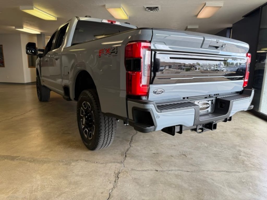 A 6.7L High Output Power Stroke V8 Diesel engine accompanied by a 10-Speed Automatic transmission is going to get you where you want to go and then some! Get there in style and comfort with a Glacier Gray Metallic Tri-Coat exterior and Black Onyx/Platinum Blue w/Unique Platinum Leather 40/Console/40 Seats interior in this 2025 Ford F-350SD Platinum.