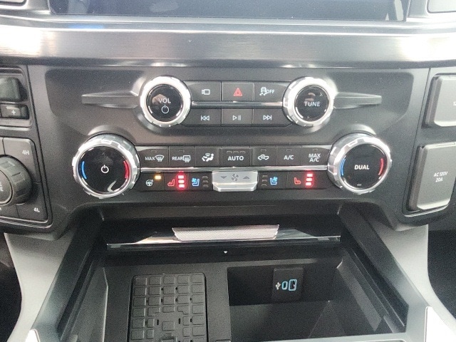 Chrome Package (6" Angular Bright Anodized Step Bars, Chrome Door Handles, Chrome Exhaust Tip, and Wheels: 20" Chrome PVD Aluminum), FX4 Off-Road Package (Hill Descent Control and Off-Road Specifically Tuned Shock Absorbers), Lariat Ultimate Package (4-Way Adjustable Headrests, Head-Up Display, Power-Sliding Rear-Window w/Defrost, Privacy Glass, Pro Trailer Backup Assist, Pro Trailer Hitch Assist, Radio: B&O Unleashed Sound System by Bang & Olufsen, SiriusXM Radio w/360L, SYNC 4 w/Enhanced Voice Recognition, and Tailgate Step & Handle), Order Code 618A, Twin Panel Power Moonroof, 190 Amp Alternator, 3.73 Axle Ratio, 4-Wheel Disc Brakes, 410 Amp Dual Alternators, 8 Speakers, ABS brakes, Adaptive Cruise Control w/Stop-and-Go, Adjustable pedals, Air Conditioning, All-Weather Floor Mats, Alloy wheels, AM/FM radio: SiriusXM with 360L, Auto High-beam Headlights, Auto-dimming Rear-View mirror, Automatic High Beam, Automatic temperature control, BLIS w/Cross-Traffic Alert, Brake assist, Bumpers: chrome, Compass, Delay-off headlights, Driver door bin, Driver vanity mirror, Dual AGM 68 AH Battery, Dual front impact airbags, Dual front side impact airbags, Electronic Stability Control, Electronic-Locking w/3.55 Axle Ratio, Emergency communication system: SYNC 4 911 Assist, Engine Block Heater, Flow-Through Console, Front & Rear Parking Sensors, Front anti-roll bar, Front Bucket Seats, Front Center Armrest, Front dual zone A/C, Front fog lights, Front License Plate Bracket, Front reading lights, Fully automatic headlights, Garage door transmitter, Heated door mirrors, Heated front seats, Heated rear seats, Heated steering wheel, Illuminated entry, Lane-Keeping System, Low tire pressure warning, Max Recline Seats, Memory seat, Navigation System, Outside temperature display, Overhead airbag, Overhead console, Panic alarm, Passenger door bin, Passenger vanity mirror, Pedal memory, Post-Collision Braking, Power driver seat, Power passenger seat, Power steering, Power windows, Pre-Collision Assist, Pro Power Onboard - 2kW, Radio: B&O Sound System by Bang & Olufsen, Rain sensing wipers, Rapid-Heat Supplemental Cab Heater, Rear Parking Sensors, Rear reading lights, Rear seat center armrest, Rear window defroster, Remote keyless entry, Security system, Speed control, Split folding rear seat, Steering wheel mounted audio controls, Tachometer, Telescoping steering wheel, Tilt steering wheel, Traction control, Trip computer, Upfitter Switches (6), Variably intermittent wipers, Ventilated front seats, and Wheels: 18" Bright Machined & Carbonized Gray Alum