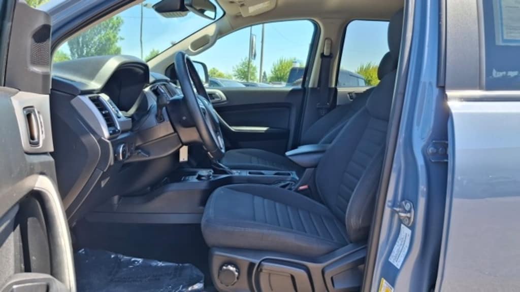 An EcoBoost 2.3L I4 GTDi DOHC Turbocharged VCT engine accompanied by a 10-Speed Automatic transmission is going to get you where you want to go and then some! Get there in style and comfort with an Azure Gray Metallic Tri-Coat exterior and Ebony Cloth interior in this 2023 Ford Ranger XLT.