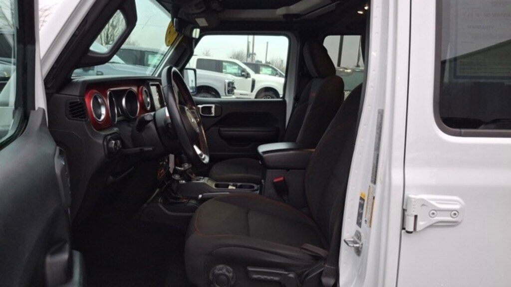 Quick Order Package 22R, 8.4" Radio & Premium Audio Group (1-Year SiriusXM Guardian Trial, 4G LTE Wi-Fi Hot Spot, 5-Year SiriusXM Traffic Service, 5-Year SiriusXM Travel Link Service, 8.4" Touchscreen Display, Alpine Premium Audio System, Auto-Dimming Rear-View Mirror, Emergency/Assistance Call, For Details, Visit DriveUconnect.com, GPS Navigation, HD Radio, Off-Road Info Pages, Radio: Uconnect 4C Nav w/8.4" Display, SiriusXM Traffic Plus, and SiriusXM Travel Link), Cold Weather Group (Heated Front Seats and Heated Steering Wheel), Trailer Tow & HD Electrical Group (240 Amp Alternator, 7 & 4 Pin Wiring Harness, 700 Amp Maintenance Free Battery, Auxiliary Switches, and Class II Receiver Hitch), Black 3-Piece Hard Top, Freedom Panel Storage Bag, No Soft Top, Rear Window Defroster, Rear Window Wiper/Washer, 4-Wheel Disc Brakes, 4.10 Rear Axle Ratio, 8 Speakers, ABS brakes, Air Conditioning, Alloy wheels, AM/FM radio: SiriusXM, Apple CarPlay/Android Auto, Automatic temperature control, Aux Battery, Brake assist, Compass, Delay-off headlights, Driver door bin, Driver vanity mirror, Dual front impact airbags, Dual front side impact airbags, Electronic Stability Control, Front anti-roll bar, Front Bucket Seats, Front Center Armrest w/Storage, Front dual zone A/C, Front fog lights, Front License Plate Bracket, Front reading lights, Fully automatic headlights, Garage door transmitter, Heated door mirrors, Illuminated entry, Integrated roll-over protection, Leather steering wheel, Low tire pressure warning, Manufacturer's Statement of Origin, MOPAR Hardtop Headliner, Non-Lock Fuel Cap w/o Discriminator, Occupant sensing airbag, Outside temperature display, Panic alarm, ParkView Rear Back-Up Camera, Passenger door bin, Passenger vanity mirror, Performance Suspension, Power door mirrors, Power steering, Power windows, Premium Cloth Low-Back Bucket Seats, Radio data system, Radio: Uconnect 4 w/7" Display, Rear anti-roll bar, Rear reading lights, Remote keyless entry, Remote Proximity Keyless Entry, Remote Start System, Security system, Speed control, Split folding rear seat, Steering wheel mounted audio controls, Stop-Start Dual Battery System, Tachometer, Telescoping steering wheel, Tilt steering wheel, Traction control, Trip computer, Variably intermittent wipers, Voltmeter, and Wheels: 17" x 7.5" Machined w/Black Pockets