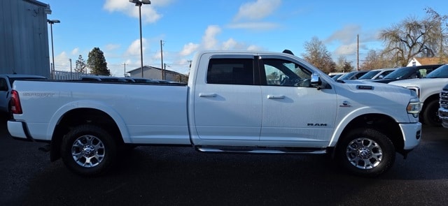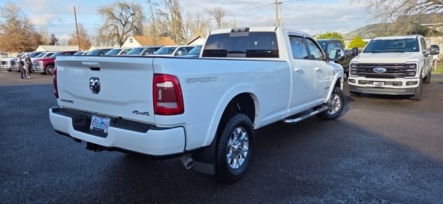 Bed Utility Group (Deployable Bed Step, LED Bed Lighting, and Spray In Bedliner), Cold Weather Group (Engine Block Heater and Winter Front Grille Cover), Laramie Level 1 Equipment Group (2nd Row In Floor Storage Bins, Auto High Beam Headlamp Control, Blind Spot & Cross Path Detection, Exterior Mirrors w/Memory, Foam Bottle Insert (Door Trim Panel), Mirror-Mounted Aux Reverse Lamps, Power Adjustable Convex Aux Mirrors, Power Adjustable Pedals w/Memory, Power Chrome Tow Mirrors w/Convex Spotter & Memory, Radio/Driver Seat/Mirrors/Pedals Memory, Rain Sensitive Windshield Wipers, Remote Tailgate Release, Single Disc Remote CD Player, and Ventilated Front Seats), Protection Group, Quick Order Package 2HH Laramie, Sport Appearance Package (Black Interior Accents, Body Color Door Handles, Body Color Grille Surround, Painted Front Bumper, Painted Rear Bumper, and Sport Decal), Towing Technology Group (CTR Stop Lamp w/Cargo View Camera, Surround View Camera System, and Trailer Reverse Guidance), #1 Seat Foam Cushion, 10 Speakers, 115V Auxiliary Rear Power Outlet, 12" Touchscreen Display, 2 Way Rear Headrest Seat, 220 Amp Alternator, 3.73 Axle Ratio, 4 Way Front Headrests, 4-Wheel Disc Brakes, 5th Wheel/Gooseneck Towing Prep Group, ABS brakes, Active Noise Control System, Adjustable pedals, Air Conditioning, Alloy wheels, AM/FM radio: SiriusXM, Apple CarPlay, Apple CarPlay/Android Auto, Auto-dimming Rear-View mirror, Automatic temperature control, Brake assist, Bumpers: chrome, Center Hub, Compass, Delay-off headlights, Driver door bin, Driver vanity mirror, Dual front impact airbags, Dual front side impact airbags, Electronic Stability Control, Electronically Controlled Throttle, Folding Flat Load Floor Storage, Front anti-roll bar, Front Bumper Sight Shields, Front Center Armrest w/Storage, Front dual zone A/C, Front fog lights, Front reading lights, Front Seat Back Map Pockets, Fully automatic headlights, Garage door transmitter, Google Android Auto, GPS Antenna Input, Heated door mirrors, Heated Front Seats, Heated front seats, Heated Steering Wheel, Heated steering wheel, High Back Seats, I/P Mounted Auxiliary Switches, Illuminated entry, Integrated Voice Command w/Bluetooth, Leather steering wheel, Leather Trim 40/20/40 Bench Seat, Low tire pressure warning, Manufacturer's Statement of Origin, Occupant sensing airbag, Outside temperature display, Overhead airbag, Overhead console, Panic alarm, ParkView Rear Back-Up Camera, Passenger door bin, Passenger vanity mirror, Power 8-Way Adjustable Passenger Seat, Power Adjust 8-Way Driver Seat, Power door mirrors, Power driver seat, Power passenger seat, Power steering, Power windows, Radio data system, Radio: Uconnect 12.0 w/Navigation, Radio: Uconnect 4 w/8.4" Display, Rear 60/40 Folding Seat, Rear reading lights, Rear seat center armrest, Rear step bumper, Rear Wheelhouse Liners, Rear window defroster, Remote keyless entry, Security system, Selectable Tire Fill Alert (DISC), SiriusXM Satellite Radio, SiriusXM w/360L, Speed control, Split folding rear seat, Steering wheel mounted audio controls, Tachometer, Tilt steering wheel, Tip Start, Traction control, Trip computer, Turn signal indicator mirrors, USB Host Flip, Variably intermittent wipers, Voltmeter, and Wheels: 18" x 8.0" Polished Aluminum