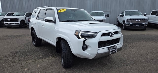 A 4.0L V6 SMPI DOHC engine accompanied by a 5-Speed Automatic with Overdrive transmission is going to get you where you want to go and then some! Get there in style and comfort with a Super White exterior and Graphite Premium Synthetic interior in this 2018 Toyota 4Runner TRD Off-Road Premium.